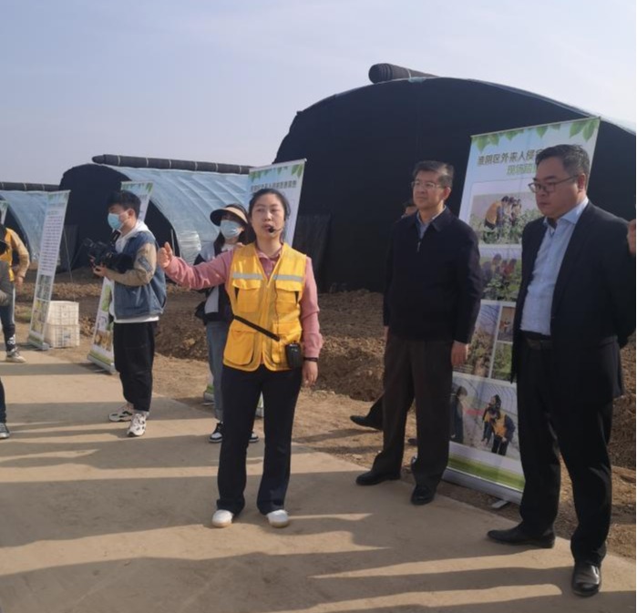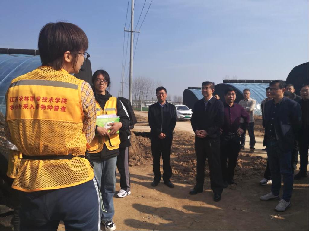 3月8日,受江苏省农作物外来入侵病虫害普查办公室委托,风景园林学院林业技术教研室教师团队宋微教授、刘南清副教授、陈瑞旭博士和邱秀文博士一行赴淮阴市淮阴区马头镇苏椒壮村产业园开展了农作物外来入侵病虫害普查现场培训工作。参与此次培训的人员包括苏北各区县农业农村局、植保站和普查第三方的相关负责人,共70余人。