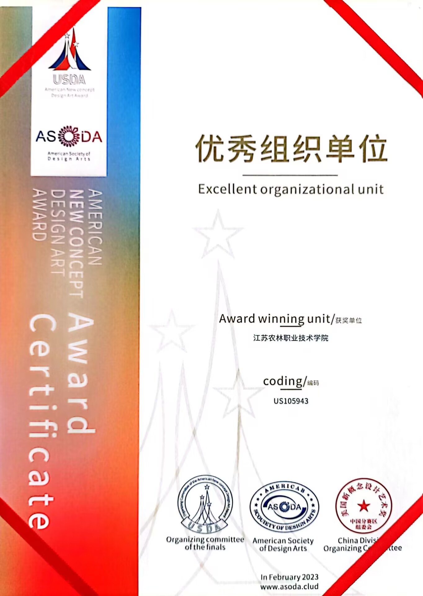 3月2日,2022 USDA美国新概念设计艺术奖获奖名单公布。USDA美国新概念设计艺术奖是由美国设计艺术协会主办,本届大赛共收到全球各国家和地区参赛作品22000余件,最终共评选USDA概念设计奖15件、一等奖615件、二等奖2100件、三等奖2855件。信息工程学院盛世古德创意设计大师工作室师生报送作品95件,经过中国分赛区遴选和美国普林斯顿市全球总决赛的评审,FUN乐天使官方网站获得中国赛区优秀组织奖,盛世古德创意设计大师工作室彭鑫老师获得优秀指导教师奖,工作室师生在全球总决赛中分别获得:一等奖2项、二等奖10项、三等奖9项,获入围奖和卓越奖共计13项。
