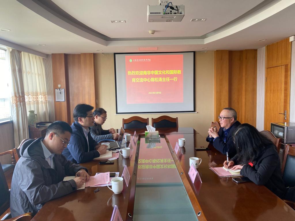 3月9日下午,南非中国文化和国际教育交流中心副主任陈松涛一行受邀到FUN官网访问洽谈中国-南非涉农项目合作。国际教育学院院长杨广荣、农学园艺学院党总支副书记王全智、机电工程学院副院长赵梦龙参加了座谈会。