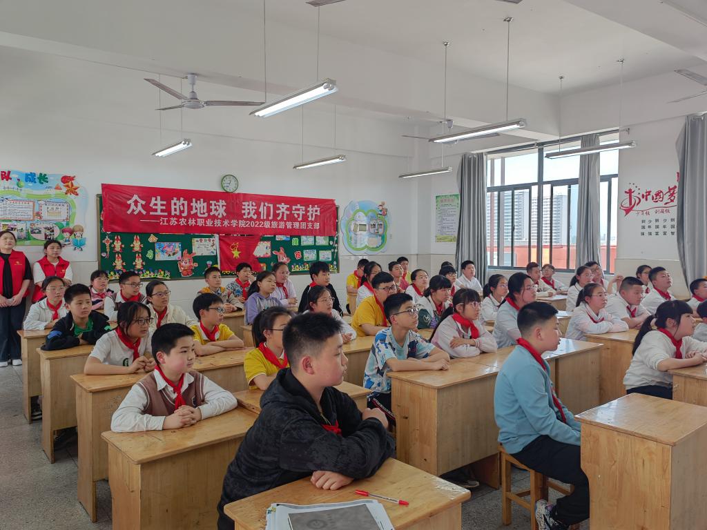 在全国第54个世界地球日(4月22日)来临之际,4月17日下午,经济与人文学院22旅游管理团支部走进句容市崇明小学文昌校区六(5)中队开展“众生的地球我们齐守护”主题活动。