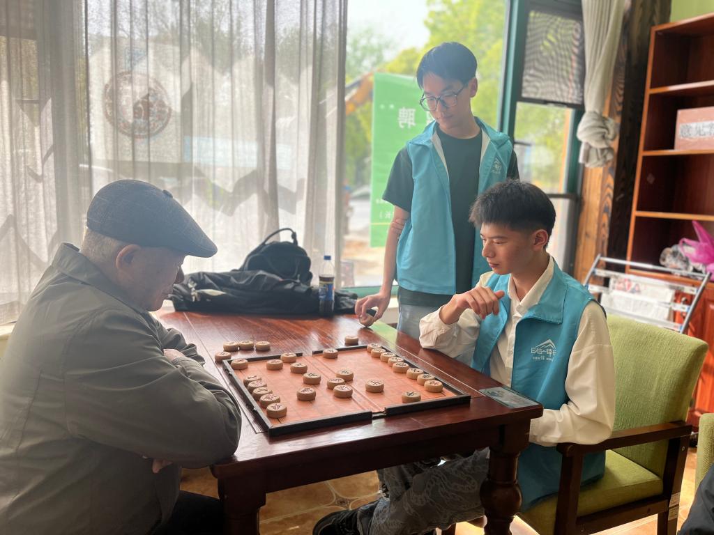 活动中,同学们以两人为一组对接一名老人,帮助老人整理房间内务,陪老人拉家常。随后,根据老人们的兴趣爱好,陪同老人们开展下象棋、打扑克牌等娱乐活动。最后,同学们为老人们表演精心准备的文娱节目,老人们在欢声笑语中度过愉快的周末。