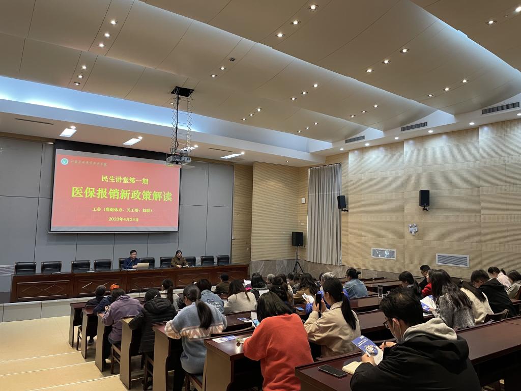 4月24日下午,由学院工会组织的民生讲堂第一期在研发楼报告厅举办。句容市医保局党组成员、医保中心主任彭忠为教职工们详细讲解了《医保报销新政策解读》。
