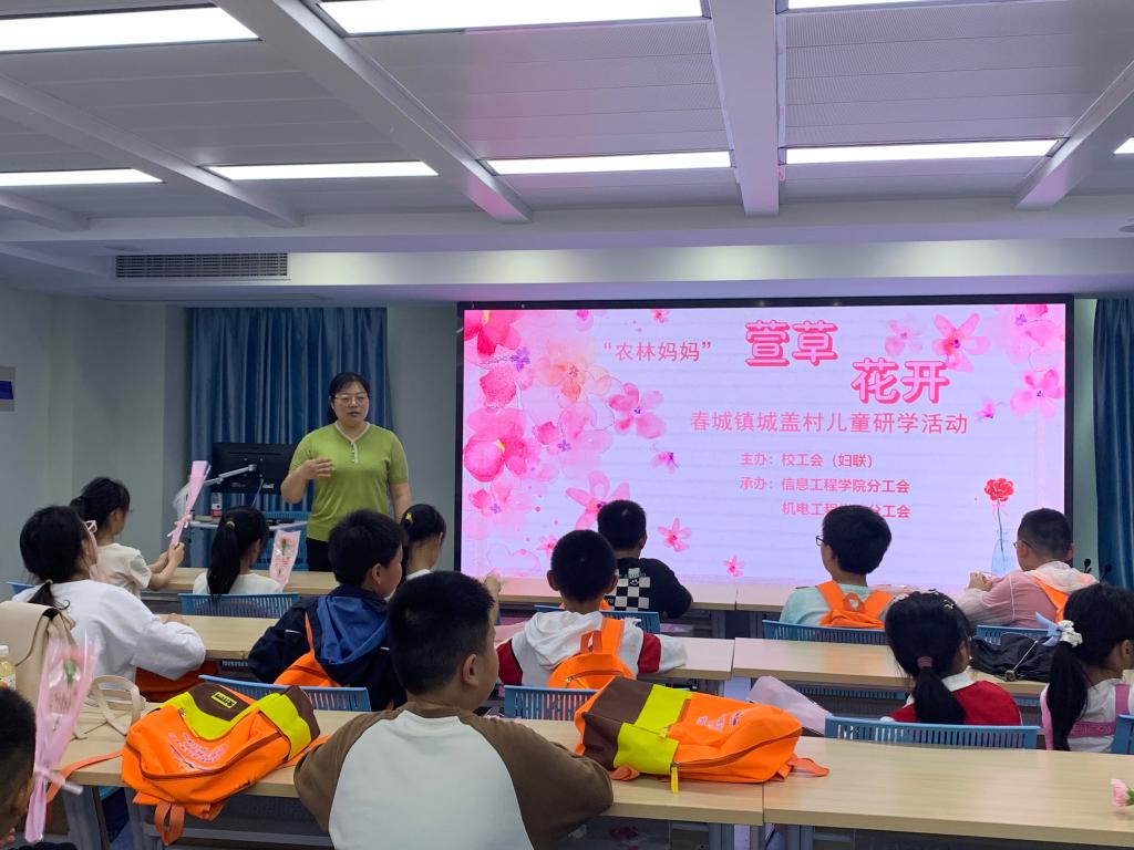 5月14日,在学院工会(妇联)的指导下,句容市萱草花志愿者——“农林妈妈”爱心团组织城盖村16名儿童开展母亲节儿童研学活动。信息工程学院分工会、机电工程学院分工会承办部分研学内容。
