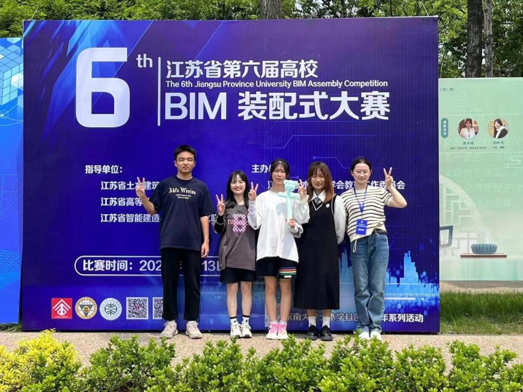 近日,由江苏省土木学会教育工作委员会与东南大学联合举办的“江苏省第六届BIM装配式大赛”在东南大学举办。风景园林学院郭婳婳、王剑、徐文娟等三位老师指导的21工程造价专业四位同学(共两支队伍)经过两个多月的刻苦训练,以总成绩第一和第六荣获BIM数字化应用技术组高职组一等奖和三等奖,实现在BIM比赛中零的突破。