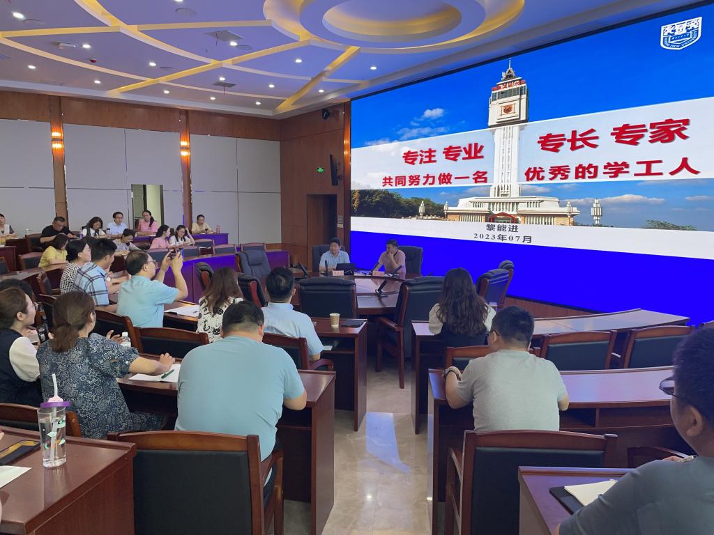 南京工业大学党委学生工作部部长黎能进为参训人员开展了题为《学生工作职责定位与个人发展》的培训,围绕辅导员九大工作职责,重点阐述了新时代学生工作的基本内涵、理念、思路方法。
