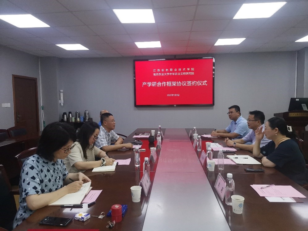 7月7日上午,经济与人文学院与中华农业文明研究院在南京农业大学人文与社会发展学院签署产学研合作框架协议。中华农业文明研究院院长、南京农业大学人文与社会发展学院院长卢勇、学院党委委员、副院长毕德全、经济与人文学院相关负责人等参加了签约仪式。