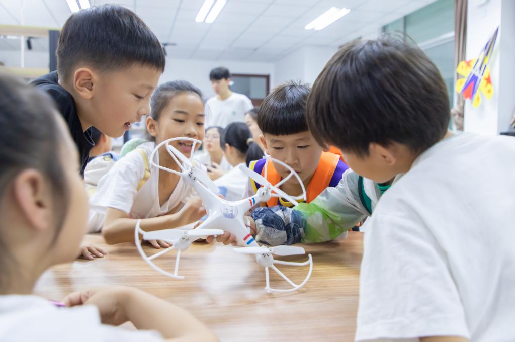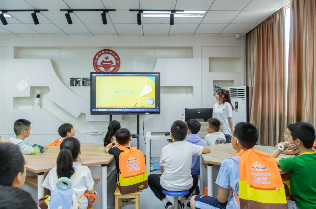 启动仪式上,红色思政课将爱国主义情怀厚植于孩子们的心中。科普实践课堂上,孩子们听着志愿者哥哥姐姐讲解物理小实验的实践原理,自己动手完成物理小实验;无人机课程,孩子们探索小型无人机飞行的技巧,体验操控大型植保无人机,上机模拟飞行操控无人机、看无人机花式表演……LED芯片焊接、3D打印等专题科普课程则带领孩子们“沉浸式”体验科技感十足的科普实践。