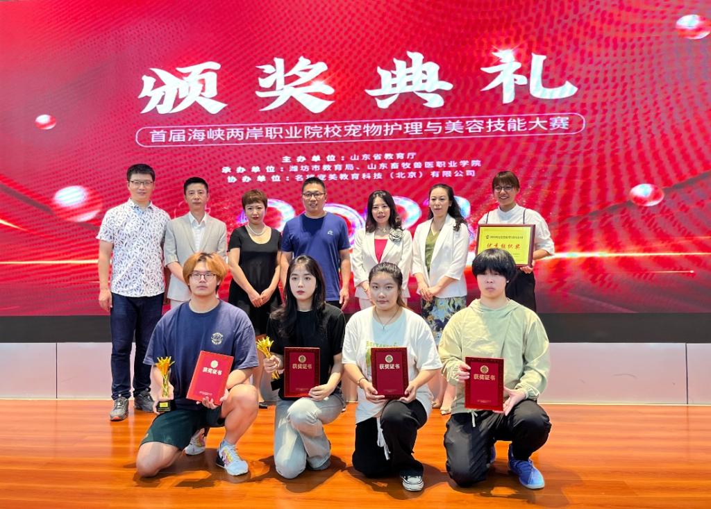 为深化两岸职业教育交流,提升职业院校人才培养质量,2023年7月12日至14日,由山东省教育厅主办,潍坊市教育局与山东畜牧兽医职业学院承办的首届海峡两岸职业院校技能大赛在潍坊举行。此次大赛共有自大陆和台湾19所院校的60名选手参赛,比赛内容为贵宾犬拉姆装的修剪。
