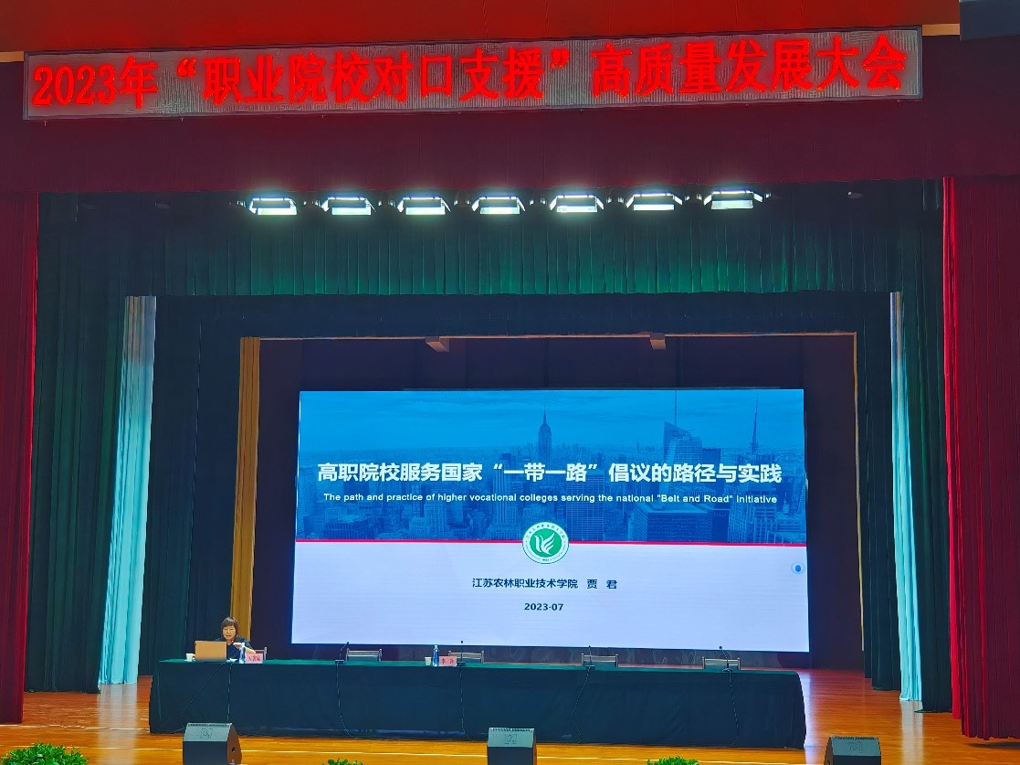 会议就食品相关高职院校援疆工作高质量发展做了统一的规划与部署。贾君应邀作题为“高职院校服务‘一带一路’倡议的路径与实践”的报告。