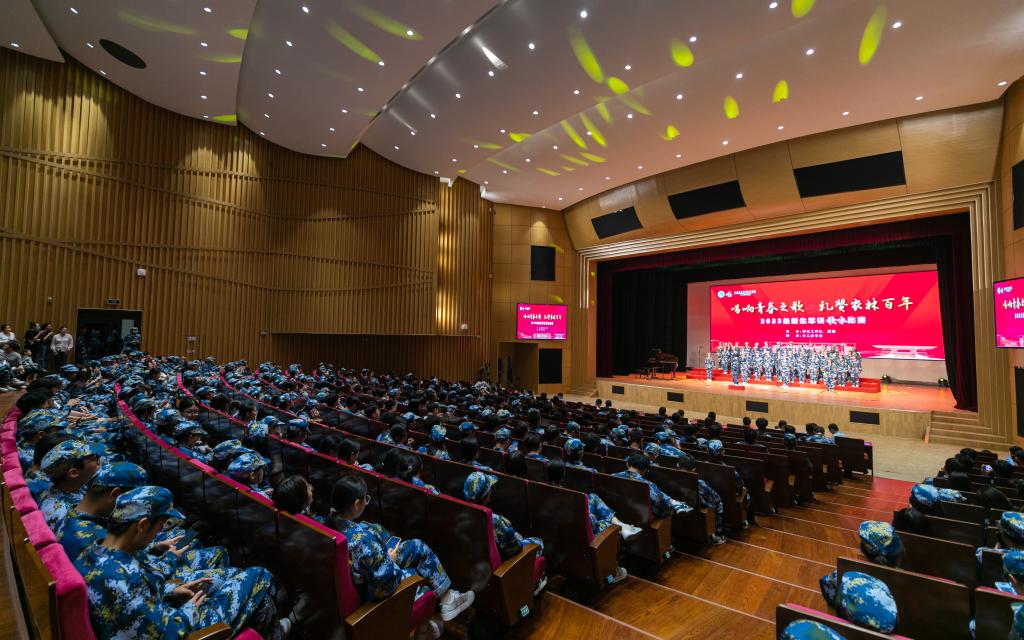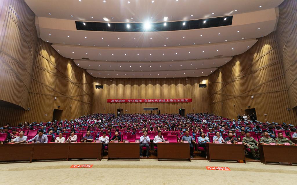 9月26日,学院大学生艺术中心剧场歌声嘹亮,青春激昂,2023年新生军训大合唱比赛成功举办。学院党委委员、副院长毕德全出席活动,学工处、团委和各二级学院负责人同近千名新生共同现场观看了比赛,同时,本次比赛还开通了网络直播,全院师生可在直播平台同步观看。