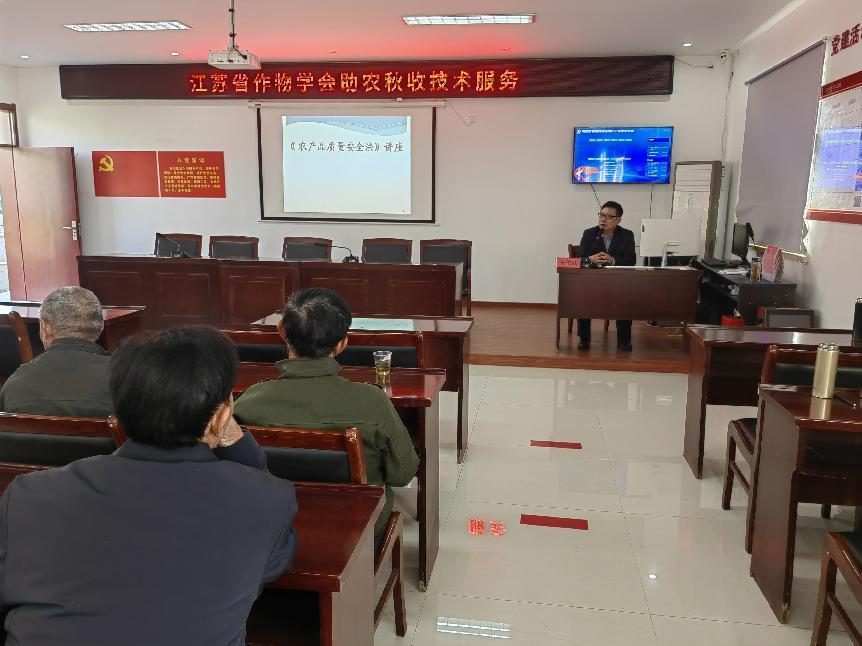 10月20日下午,江苏省作物学会组织科技服务团赴句容市边城镇佴池村开展“粮食作物秋收秋种及农产品安全生产技术培训”活动。来自边城镇佴池村的种粮大户、农民专业合作社等新型农业经营主体代表50余人参加了活动。江苏省作物学会秘书长杨宝林出席了活动。