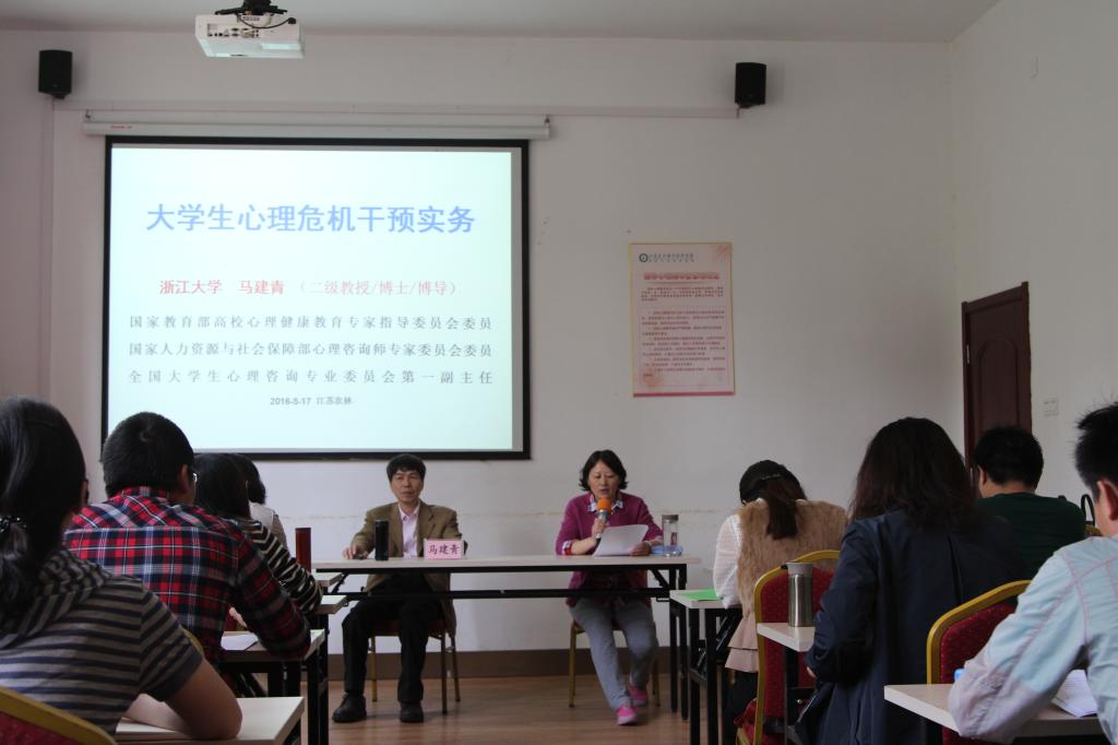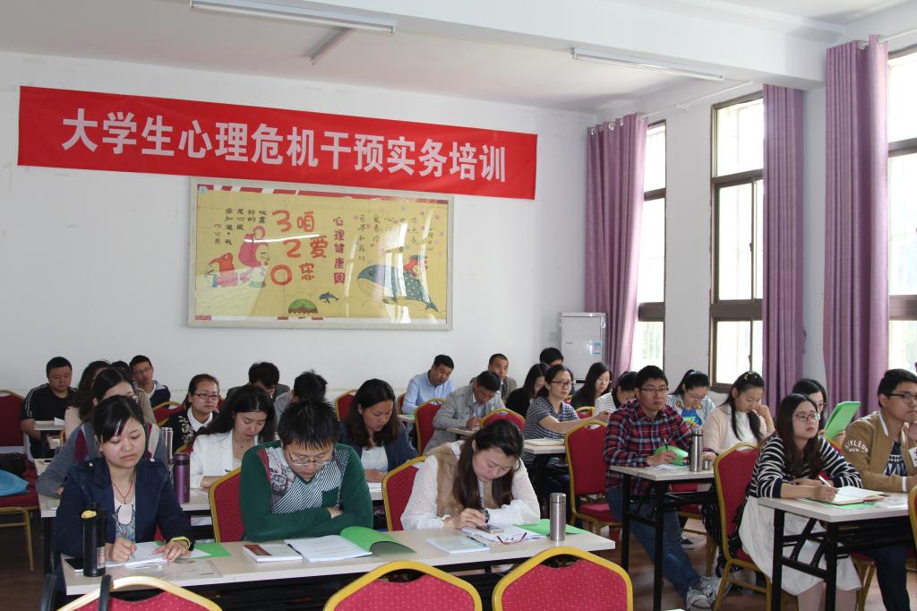 5月17日至18日,FUN官网心理健康教育中心主办的“大学生心理危机干预实务”培训,在团体心理辅导室举行,江苏科技大学、镇江船艇学院、镇江市高等专科学校以及FUN官网共37名老师参加了此次培训。培训特邀全国知名心理专家、浙江大学教授马建青老师主讲。
