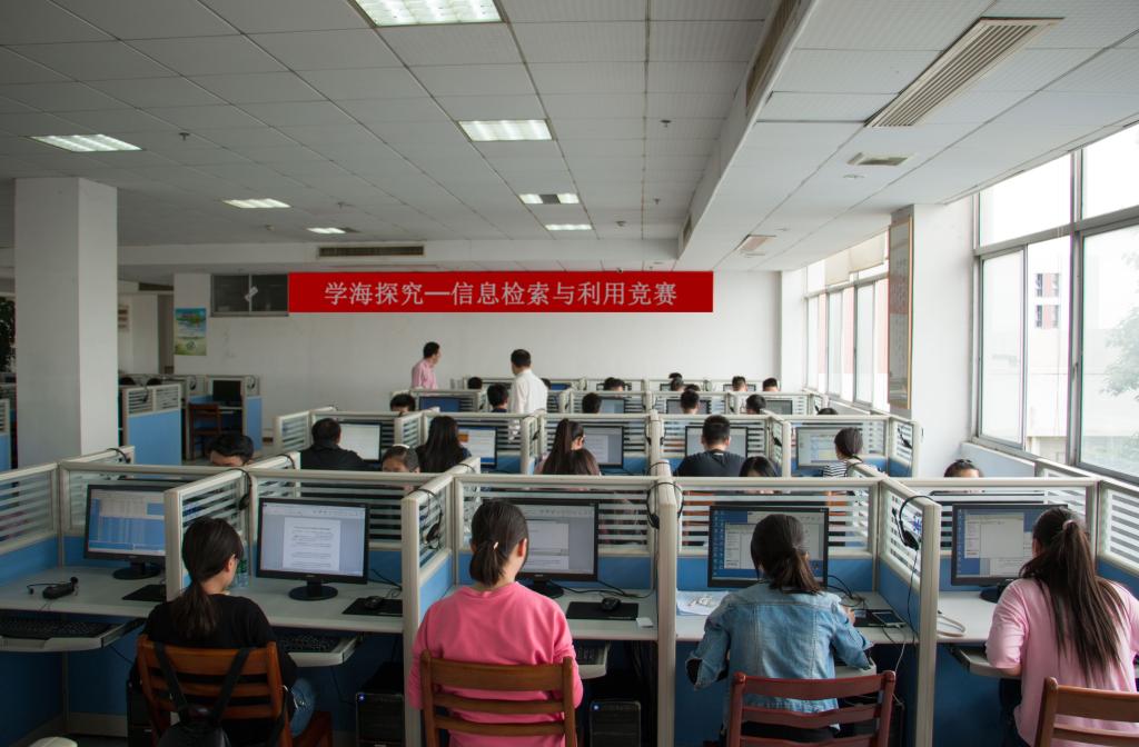 下午4点比赛准时开始,参赛者在指定的电脑上采用网上答题的方式完成比赛。比赛内容包括用图书馆电子资源中的中国知网(CNKI)数据库、读秀学术搜索、万方数据库、维普资讯数据库等,按照题目要求进行电子资源的检索。