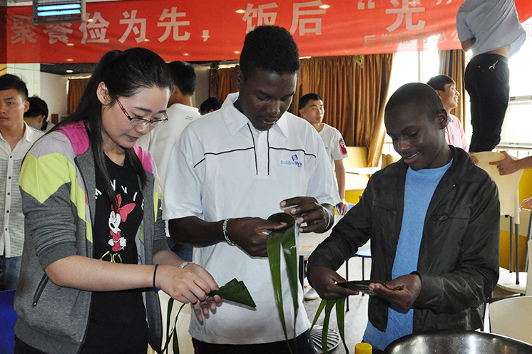 机电工程系分团委举办了“粽叶飘香 浓情端午”主题活动。同学们在食堂阿姨的指导下卷粽叶、放糯米、捆扎,粽叶在大家手中上下翻舞,不一会儿功夫,一百多个粽子就做好了。应邀参加的肯尼亚留学生李小龙与何森两位同学也在大家的帮助下学习了粽子的制作过程,并包出了成品,他们表示参与中国传统美食的制作,让他们更好地体会了中国的文化。随后,系部“益动社”的志愿者们带着包好的粽子走访了结对帮扶的孤寡老人,提前送去节日的问候和祝福。