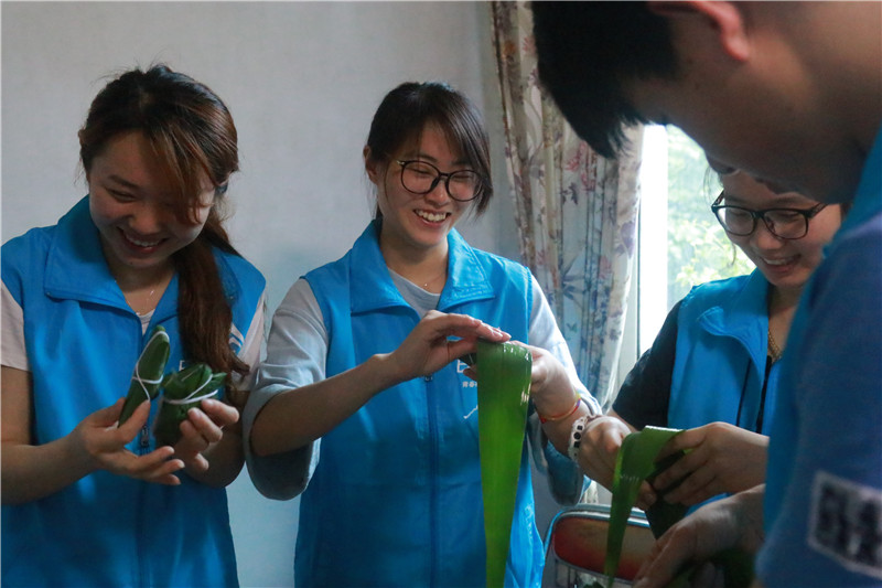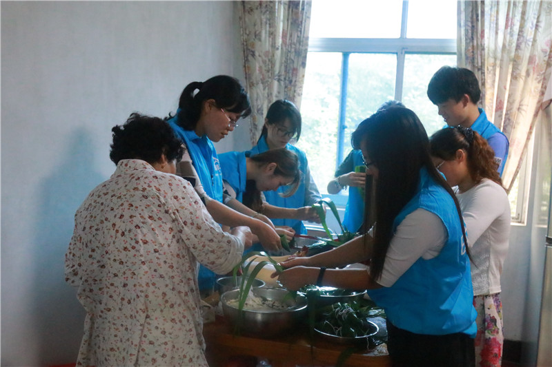 学生党员们带上粽叶、糯米、红枣等食材来到老教师家,张奶奶的热情接待让党员志愿者们倍感温暖。学生党员们在张奶奶的指导下,有模有样地包起粽子,过程中的学习、合作、调皮为老教师们带去了开心的笑声。结束后,党员志愿者们围坐在老教师身边,听他们讲老一辈革命者的故事以及他们的人生感悟,学生党员们感触颇深。