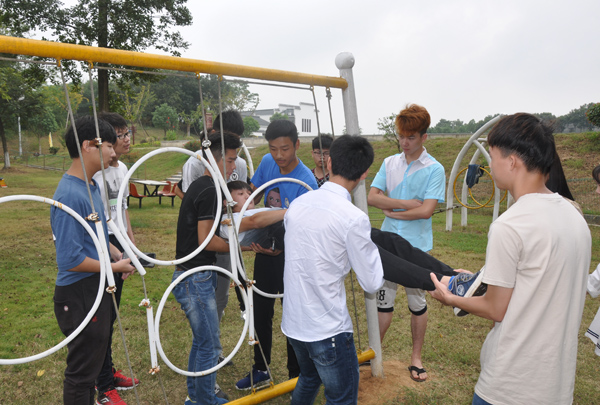 茅山校区的入学教育以户外体验教育为主题。“新生去哪儿”活动以宿舍为单位组队参加,每队设置队长一名,参赛人员手持任务卡和地图,在校区内寻找医务室、心理访谈室、大学生活动中心等八个标志性任务点并拿到印章回到出发点即为胜利。“素质拓展”活动中,穿越电网、信任背摔、胜利墙等项目更是让新同学们尽快融入了集体。