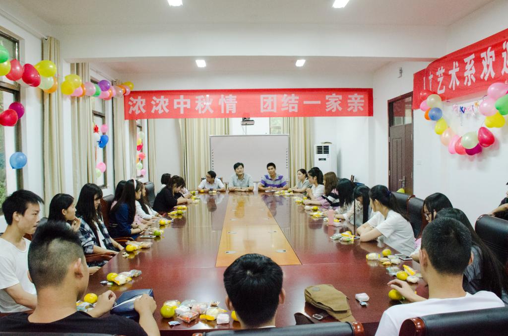 人文艺术系在系会议室开展了“浓浓中秋情 团结一家亲”主题活动,系部相关负责人、新生班主任与2016级47名留校新生一起过节。在主题活动座谈会上,副书记杨广荣给新生们分发了月饼,表示了节日的问候,同时希望新生们能够快速融入新环境,适应新生活,快速成长与独立起来。座谈会后,“灯谜有奖竞猜”、“击鼓传花”、“才艺展示”和“中秋诗词”诵读等互动游戏让新生们度过了一个快乐的中秋节。
