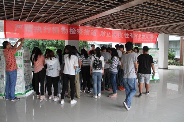 活动由南京农业大学胡白石教授担任主讲,他由浅入深地给同学们讲解了植物检疫的相关专业知识,介绍了植物检疫的相关负责部门和植物检疫法律及实施条例,提出植物检疫人人有责的建议,让同学们受益匪浅。现场还举行了植物检疫知识有奖竞答活动,同学们根据讲座内容结合自己所学专业知识竞相抢答。活动最后,农委工作人员还给大家发放了植物检疫的知识手册,并进行了现场互动。