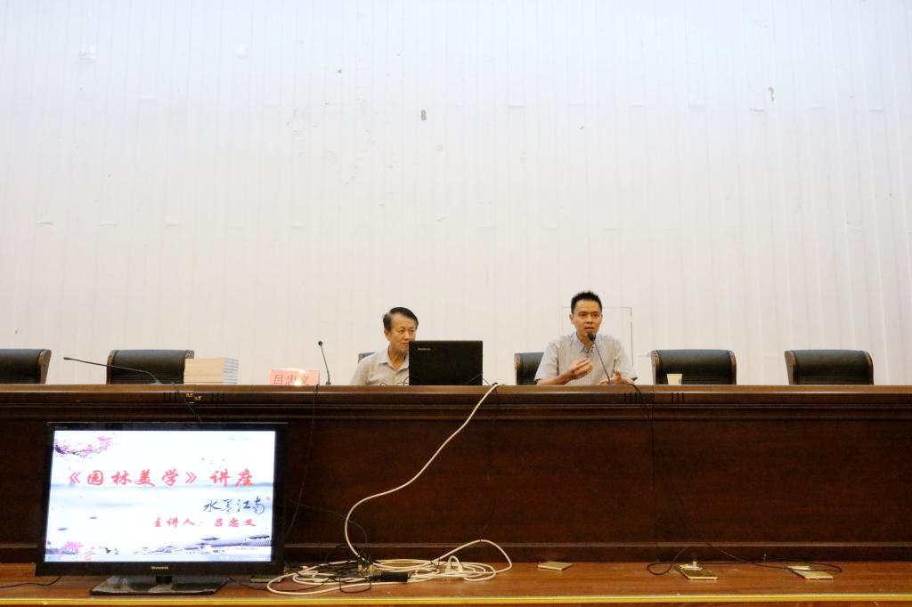 9月21日,原江苏省林业勘察设计院副院长,教授级高级工程师、享受国务院特殊津贴专家吕忠义教授应邀携其著作《风景园林美学》为FUN官网2016级园林相关专业同学做“园林美学”讲座,风景园林系党总支副书记熊伟主持讲座。