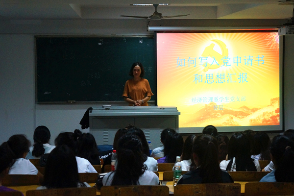 为帮助新生学习党的基本知识,了解党的历史,端正入党动机,提高思想政治素质,经济管理系学生党支部组织开展了微党课教育,并于9月22日晚在理科楼309教室正式开讲。