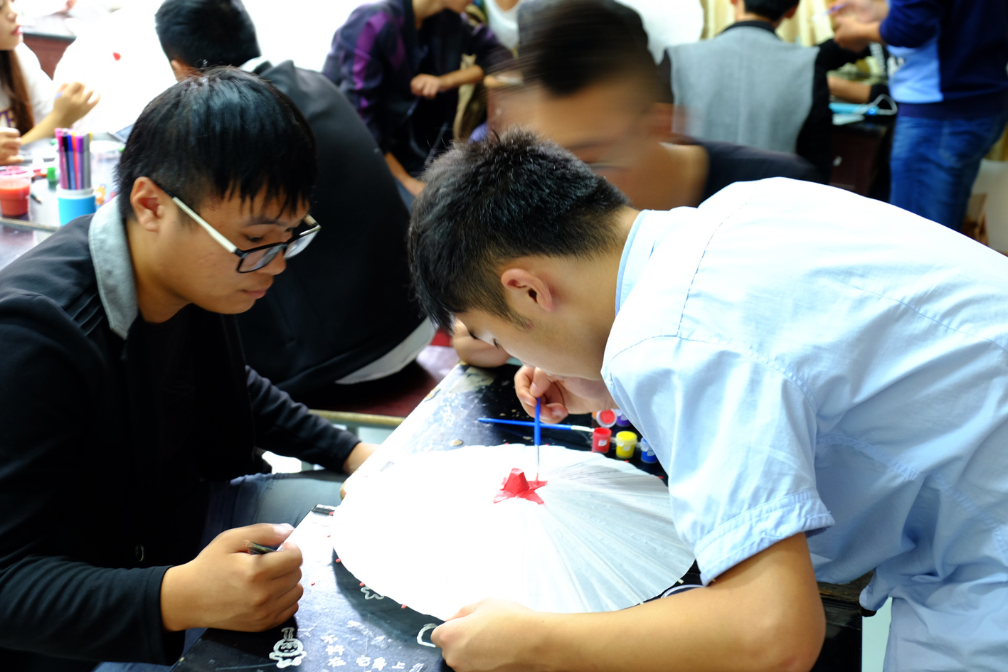 活动中,同学们在直径为40cm的宣纸伞面上进行绘画,以爱国、爱党、爱生活的主题尽情挥洒激情。虽然大家没有专业的艺术学习经历,但他们仍一笔一画,精心绘出自己对祖国华诞,繁荣富强的美好祝愿。