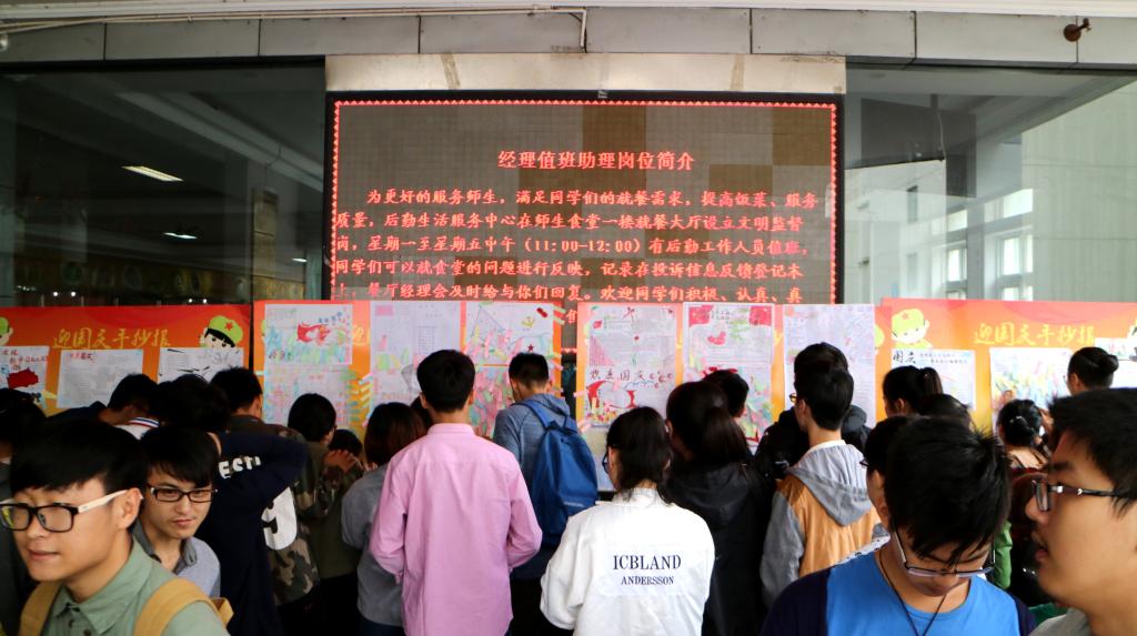 为庆祝第六十七个国庆节,9月29日中午,风景园林系在食堂门前举办了“迎国庆”手抄报评比活动。