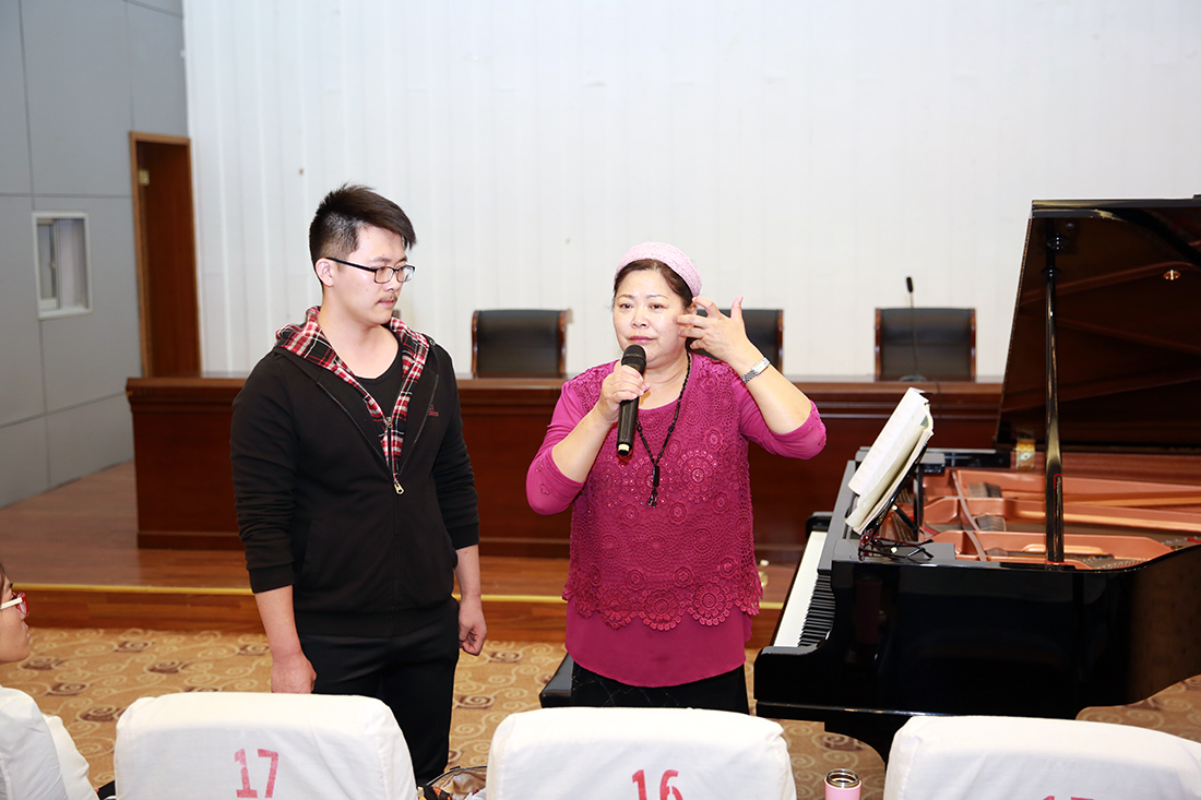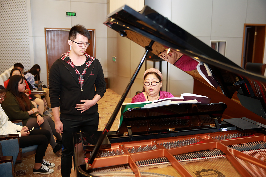 讲堂上,FUN官网音乐表演班的同学们先后登台演唱,王远教授一边为他们弹琴伴奏,一边指导演唱技巧,从歌词发音到对音乐的理解,从气息发声到演唱技巧……王远教授用其深厚的专业知识和精湛的专业素养让FUN官网在场师生深深折服。