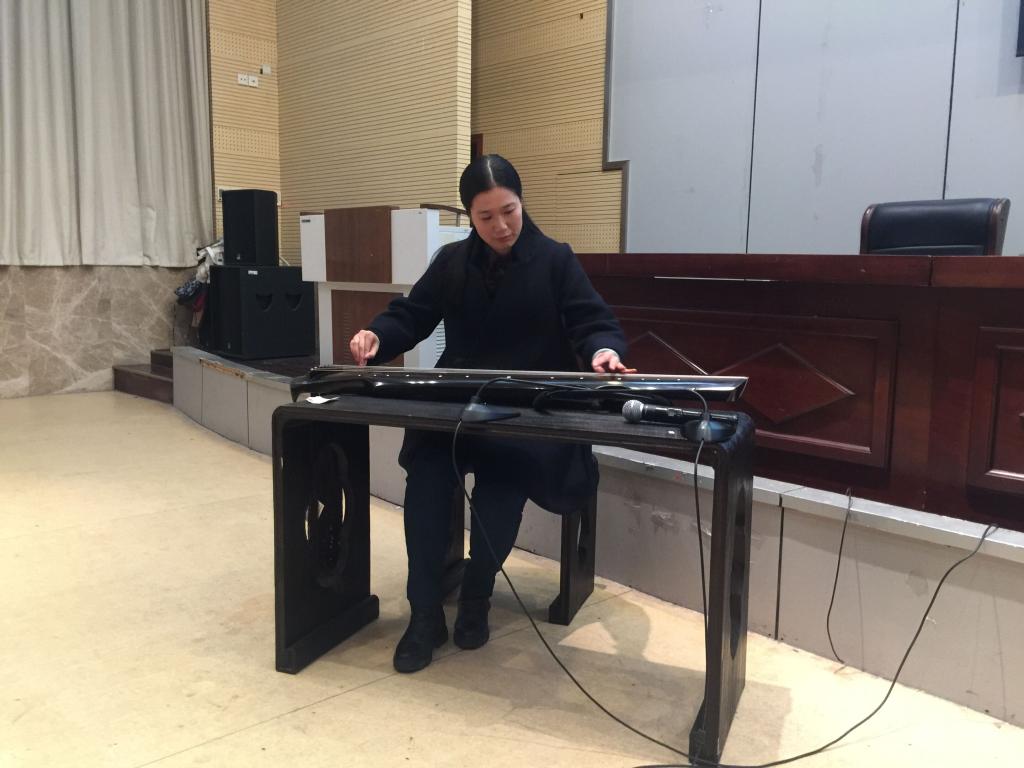 古琴是汉民族最早的弹拨乐器,是汉文化中的瑰宝,已有三千多年的历史,是人类口头和非物质遗产代表作。它是中国古代文化地位最崇高的乐器,有“士无故不撤琴瑟”和“左琴右书”之说 。韩利老师首先弹奏一曲,林达老师从古琴的来历、弹奏要求、琴谱规律及特点等几个方面为同学们进行生动地讲解,使同学们对中华文化的瑰宝——古琴艺术,有了初步的认识。
