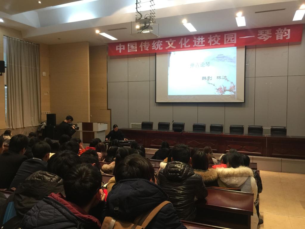 为了丰富校园文化,提升学生的文化艺术修养,2016年11月25日上午,学院团委特邀请了韩利、林达两位古琴老师在研发楼报告厅给全院师生做了一堂“弹古论琴”的古琴讲座。