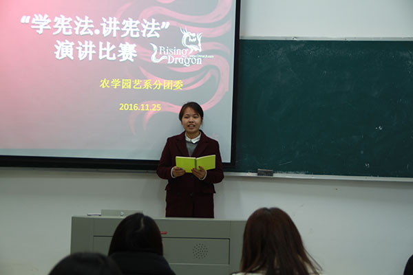 近日,农学园艺系分团委开展了“学宪法、讲宪法”主题演讲比赛,系部12名同学参加了比赛。
