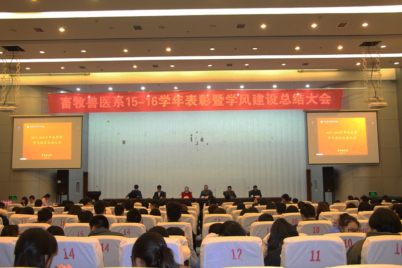12月8日,畜牧兽医系在图书馆报告厅举办了2015-2016学年表彰暨本学期学风建设活动总结大会,畜牧兽医系党总支副书记陈军老师,畜牧兽医系分团委书记朱晓宦老师及全体学工办辅导员与三百多名学生代表共同出席了此次大会。