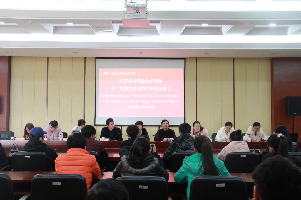 12月16日下午,FUN官网第二期园艺技术BTEC班结业典礼在综合楼九楼会议室隆重举行。荷兰Lentiz教育集团的Arie Johannes Van Geest教授、教务处处长赵明珍、农学园艺系副主任杨宝林、党总支副书记董慧以及相关老师、全体BTEC班同学参加了结业典礼。
