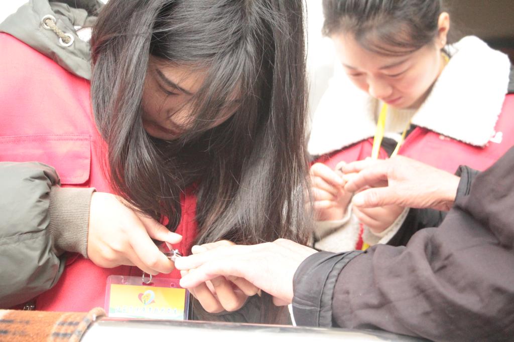 “情丝密密缝,暖暖度严冬”,志愿者们将之前针织好的围巾细心的给每位老人佩戴好,陪老人们聊天,给老人们修理指甲,帮老人们打扫房间卫生,与老人们一起运动踢毽子……志愿者们用爱心和耐心让老人们感受到了久违的温馨。