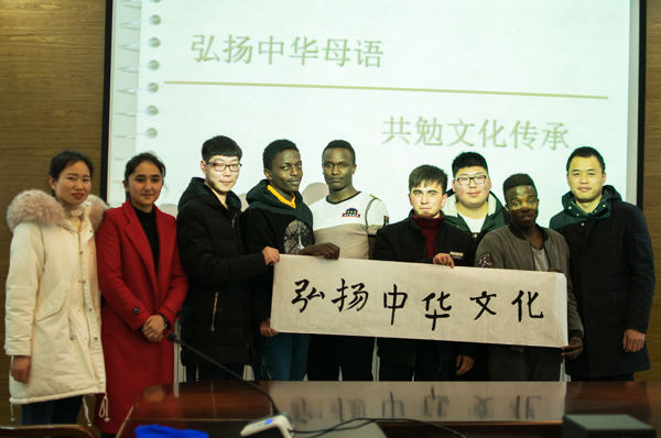 汉字作为中华文化传承的载体,包含了一代代先人们的智慧结晶。为亲近母语,传承经典,积极响应中央“增强文化自信”的号召。近日,由茅山校区分团委主办的“亲近母语,爱我母语”主题宣传活动在图书馆会议室展开。校区分团委书记朱锦老师、书法社指导老师赵新来老师、信息工程系学生会同学、外国留学生、维吾尔族学生代表和书法社团的同学参加了此次活动。