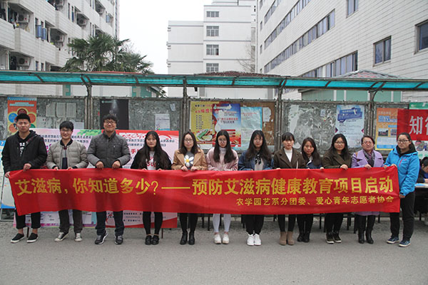 3月24日,农学园艺系分团委、爱心青年志愿者协会在食堂门口开展“艾滋病,你知道多少”健康教育宣传活动。