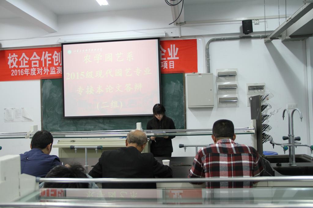 为保证答辩工作质量,系部和南京农业大学组成了答辩委员会,按照“高标准、严要求”原则对所有学生的论文进行了认真、严格的评审。答辩分自我陈述和提问与答辩两个环节,学生首先阐述了自己论文内容,答辩教师通过提问,考察学生对专业知识的掌握程度,针对论文指出存在的不足,并提出修改意见。总体来看,此次毕业论文选题与当地农业发展需求和自身工作联系紧密,研究内容呈现多样化,通过毕业论文写作与答辩,使学生综合素质得到进一步提高。
