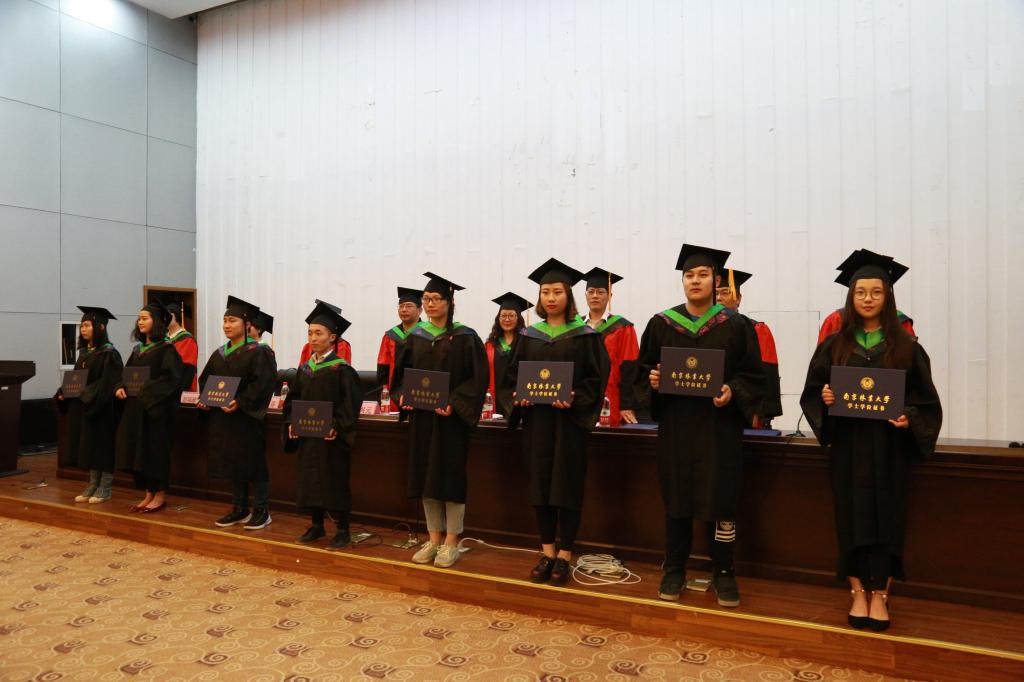 周兴元副院长代表学院首先致辞,他饱含深情地与毕业生们同叙在校期间的学习和生活,表达了对他们的良好祝愿,并代表母校对毕业生们提出了殷切期盼!教师代表刘玉华教授分享了任教以来的师生情,并送上自己美好的祝愿。毕业生代表李熙阳同学在发言中倾述着对母校的不舍之情和对未来的期待。南京林业大学风景园林学院丁彦芬副教授宣读了毕业批复决定、学位授予决定等相关文件。主席台导师为毕业生代表援正流苏、颁发学士学位证书,并合影留念。
