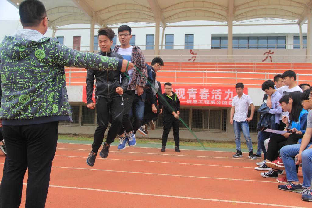 信息工程系分团委、学生会于5月4日在田径运动场开展了“弘扬五四精神 展现青春活力”趣味运动——跳大绳比赛。此次共有19个班级参赛,充分体现了同学之间的协作能力和拼搏进取精神。经过激烈角逐,16电气自动化1班最终获得冠军。