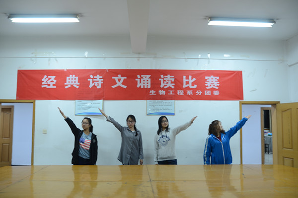 5月3、4日,为传承中华文化、纪念五四运动,生物工程系分团委举办了“农林读书人 最美读书声”经典诗文诵读比赛。系部15个班级近30组选手经过自我介绍、美文朗诵等预赛环节后,共有10组选手脱颖而出进入决赛。古典诗歌、现代散文,男声低沉、女声高亢……最终,来自15食品药品监督管理的王博同学获得一等奖。
