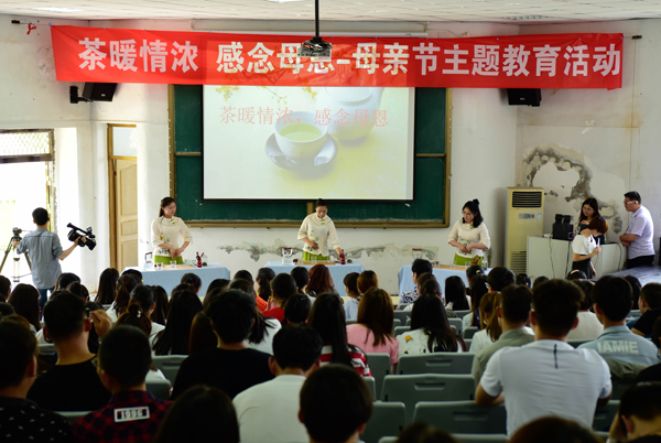 茅山校区于5月10日下午在报告厅开展“茶暖情浓,感念母恩”母亲节主题教育活动,以此对远在家中的母亲寄予一份最真挚的爱。参加本次活动的除了在校的350余名师生外,还有来自16茶艺与茶叶营销班部分学生的父亲母亲代表。活动形式分别为“诉说我与母亲的事”即15名学生代表以PPT或演讲的形式分享他们和母亲之间的故事。“茶暖情浓,感念母亲”亲手为父母冲泡一杯茶。“千里传情,感恩母爱”拨打电话问候母亲。“惊鸿回眸,找寻那抹掠影”即在父亲母亲照片墙上写下祝福语。活动现场十分有爱,15名同学的演讲让在场的师生潸然泪下。