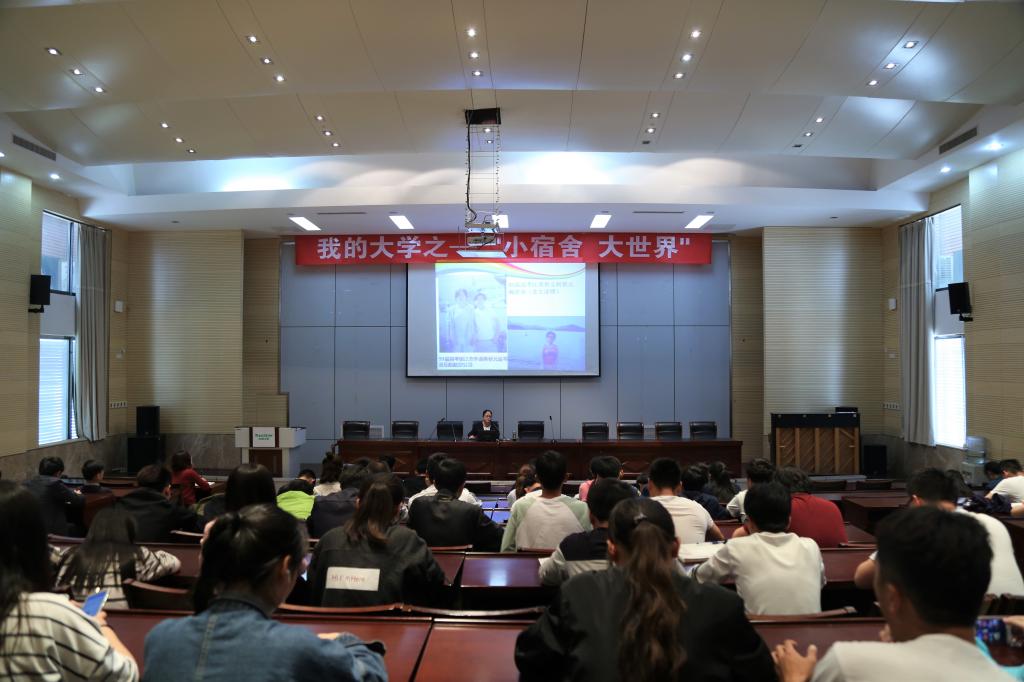 王念瑛老师分别从“当今社会人际交往的重要性”、“大学生宿舍人际交往的问题”、以及“大学生如何正确处理宿舍及他人的人际关系”三个方面进行讲解。王念瑛老师幽默风趣的语言、丰富的案例以及与场下的互动将会场气氛变得轻松,场下时时爆发出阵阵笑声和掌声。