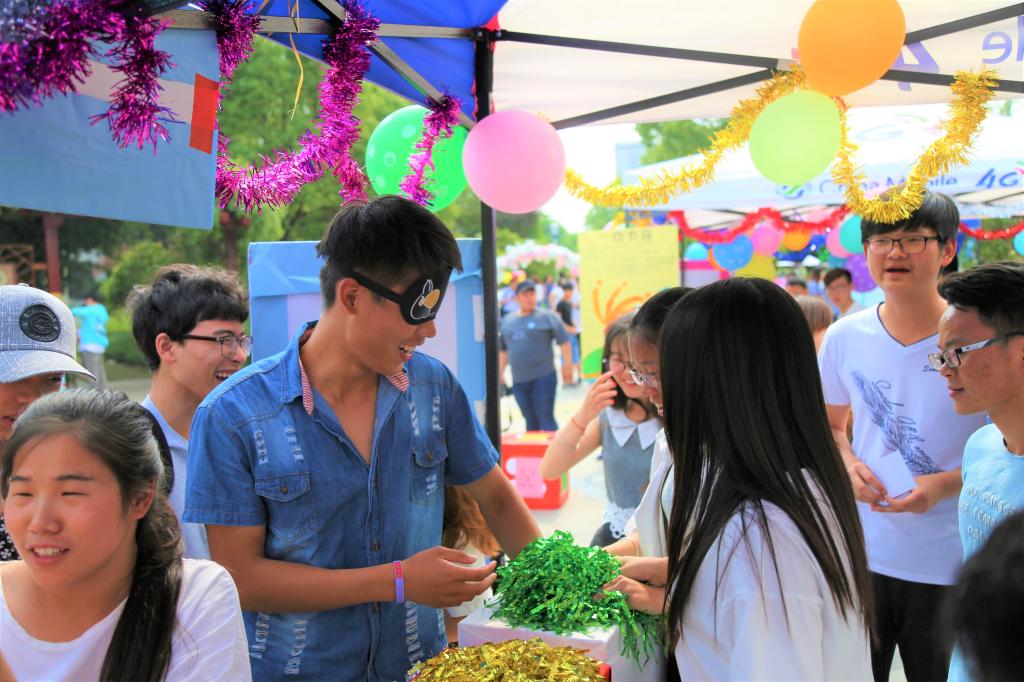本届游园会以“追寻青春印记,畅游别Young年华”为主题,活动现场共设置六个活动区域,分别是:“心灵驿站”、“70青春探索区”、“80青春挑战区”、“90青春机遇区”、“00青春升华区”和“兑奖区”。入园学生在“魔力鸡汤树”上写下心灵祝福语,即可获得入园勋章和积分卡。入园后,大家可以参与各个区域的活动获得相应积分从而参与奖品兑换。