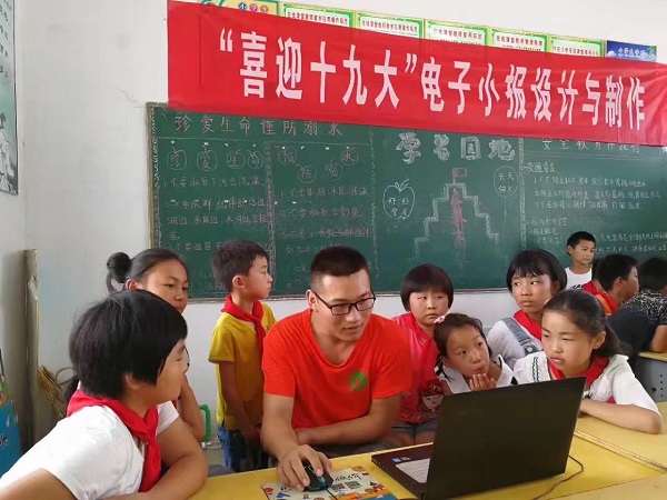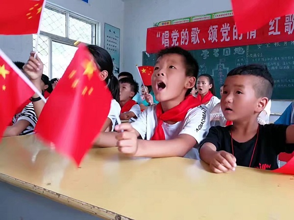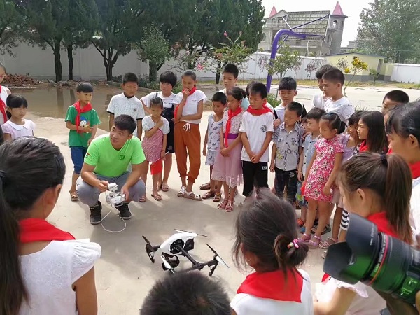 其中机器人科普知识授课模块由周伟老师主讲,从留守儿童的视角,运用幽默风趣的动画演示,带引孩子们走进机器人的世界,了解机器人工作原理,探索科技力量,启迪留守儿童树立科技强国梦想。7月1日,是中国共产党第96个建党节,“唱党的歌、颂党的情”课程模块由志愿者教授留守儿童革命歌曲,孩子们用歌声表达了对党的生日祝福。党员志愿者们通过和留守儿童分享自己的入党历程,讲党的故事,带领留守儿童学习党的知识,引导留守儿童热爱和拥护中国共产党,立志做共产主义接班人。在“无人机的飞行表演及体验”课程模块中志愿者通过简单易懂的理论教授和易操作的无人机飞行表演及体验更好地激发了留守儿童对科技探索的兴趣,加深了留守儿童对前沿科技的了解。