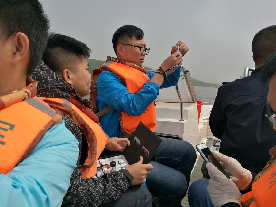 团队分组对四个水库进行实地生物采样继而对水质的水化理标进行检测,对水生生物进行显微镜定性、定量检测,最后对水库渔业提出合理对策。此次活动与句容水利渔机局达成相关调研协议,有利于渔业资源合理利用,也巩固了同学们的专业知识。