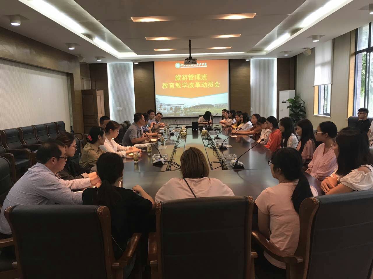为推进以实战和任务为导向的教学改革,积极探索适合旅游管理专业与景区合作的工学结合之路,提升教学质量。自本学期起,经济与人文学院旅游管理专业2014级旅游管理高职班全体学生进入茅山校区学习,充分利用江苏茶博园景区,开展真实工作场景工学结合实训。9月3日下午,教学改革推进会在茅山校区图书馆会议室召开。茅山校区、江苏茶博园负责人及经济与人文学院旅游管理专业相关师生参加了会议。