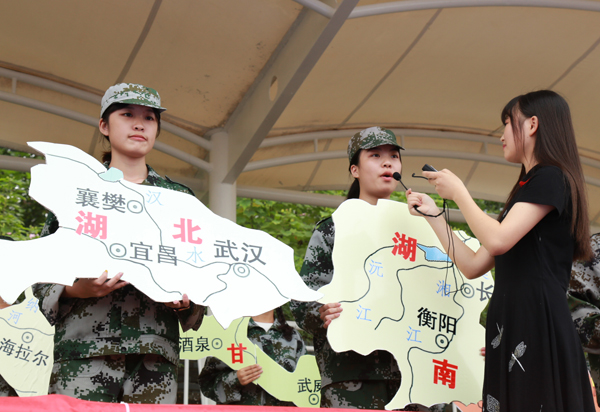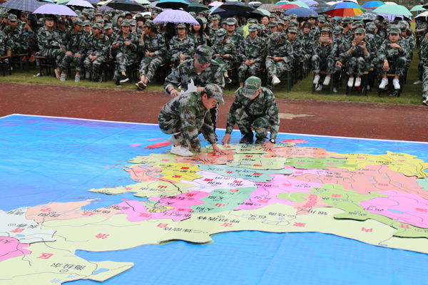在“印象祖国”画展活动中,通过前期征集,校区分团委共收到48幅来自不同班级新生的手绘图,这些图饱含了同学们对祖国山河的热爱之情;在“祖国,请听我说”环节中,来自全国24个省份的新生代表在国庆到来之际纷纷说出了对祖国的祝福语;在“一颗心,一双手,共绘祖国蓝图”中,24个新生代表共同拼出中国地图,寓意着祖国的发展需要我们团结一心,美好的未来需要每一个人的双手共同来创造。最后,活动在2000余名新生嘹亮的口号“我以我心爱祖国,我以我行报祖国”中圆满结束。