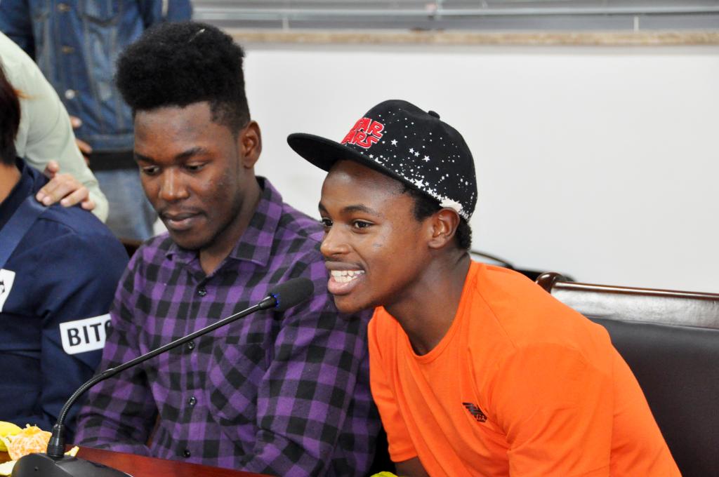 学院肯尼亚留学生李小龙、何森,老挝留学生科比发言