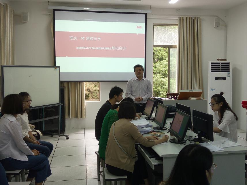 9月28日至29日,经济与人文学院会计教研室邀请用友新道科技有限公司来我校进行VBSE《基础会计》课程培训。该院会计教研室所有教师和学生参加了此次培训。