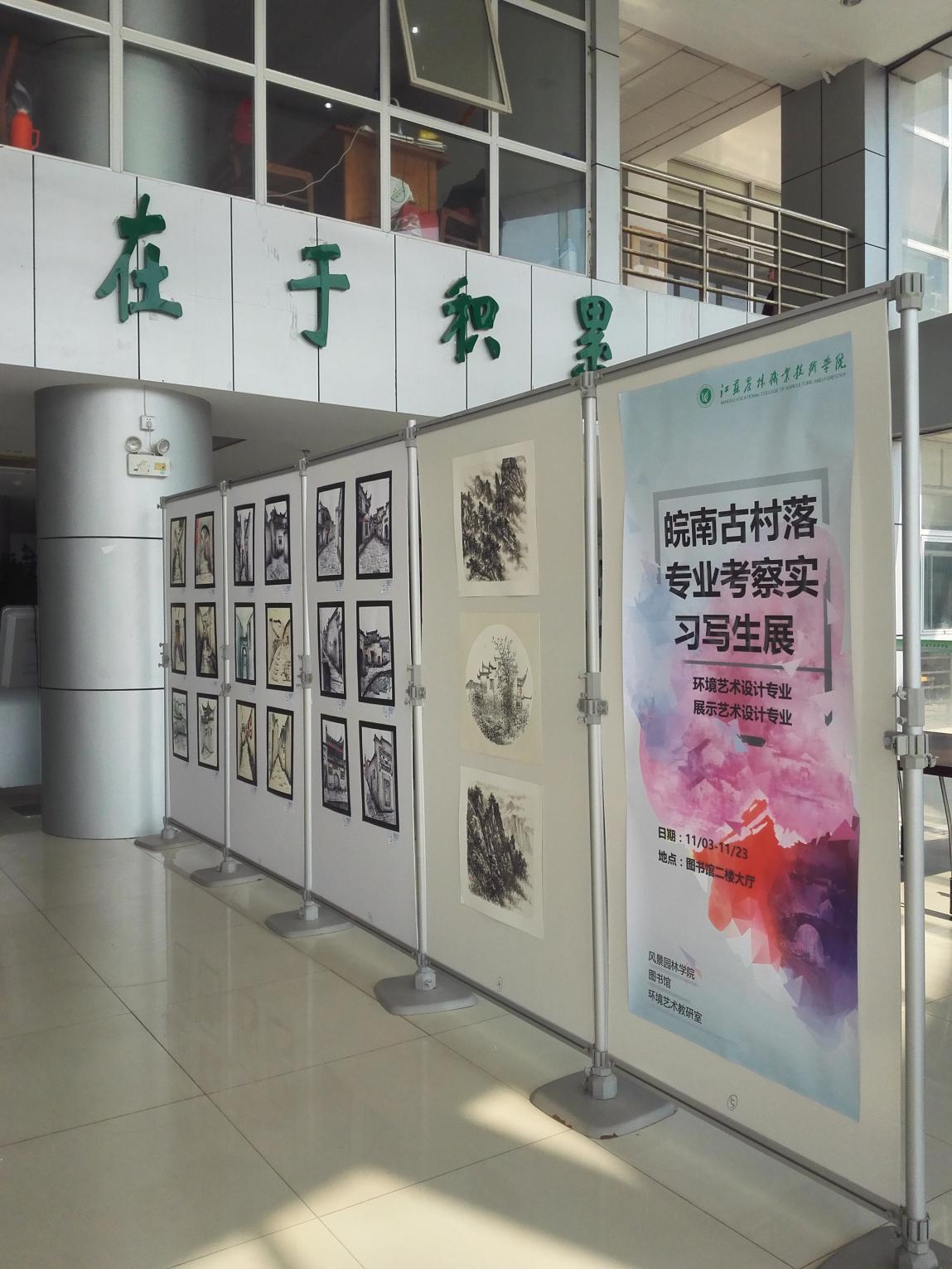 11月3日,由风景园林学院主办的“艺术设计专业皖南民俗考察写生作品展”,在学院图书馆二楼大厅展出。