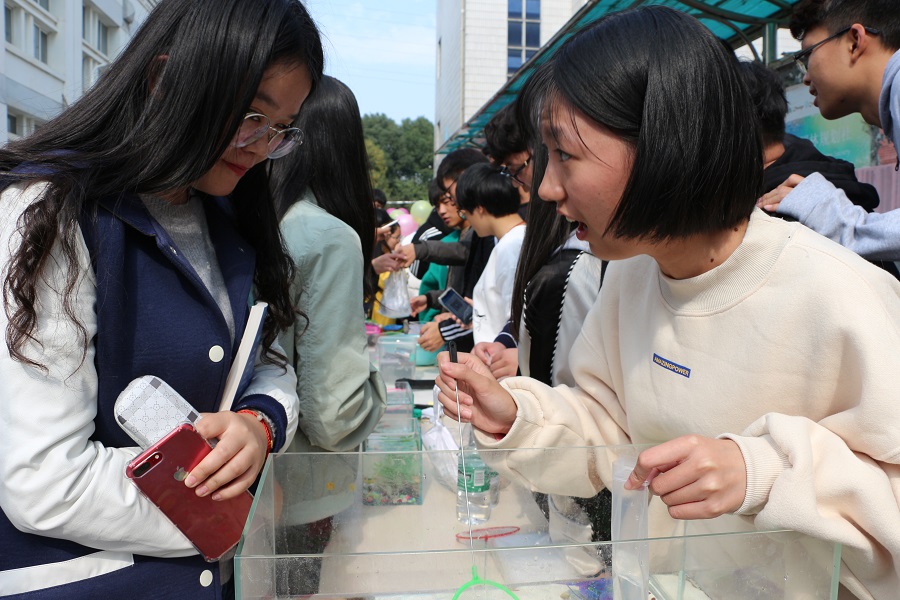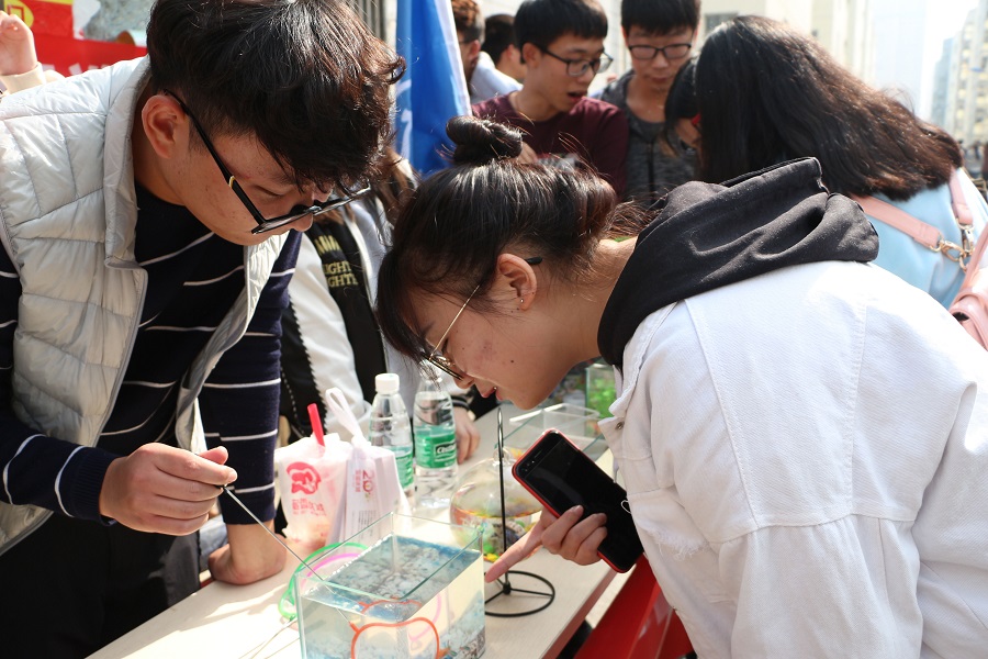 此次义卖的产品有社团成员亲手制作的鱼缸造景、多种观赏鱼(孔雀鱼、米奇鱼、红绿灯鱼、斑马鱼)以及幼龟,活动现场人头攒动,吸引了很多师生前来购买。义卖活动后,社团将把此次活动筹集的善款全部捐赠,帮助贫困老人、儿童,为他们添上冬衣,送上温暖。
